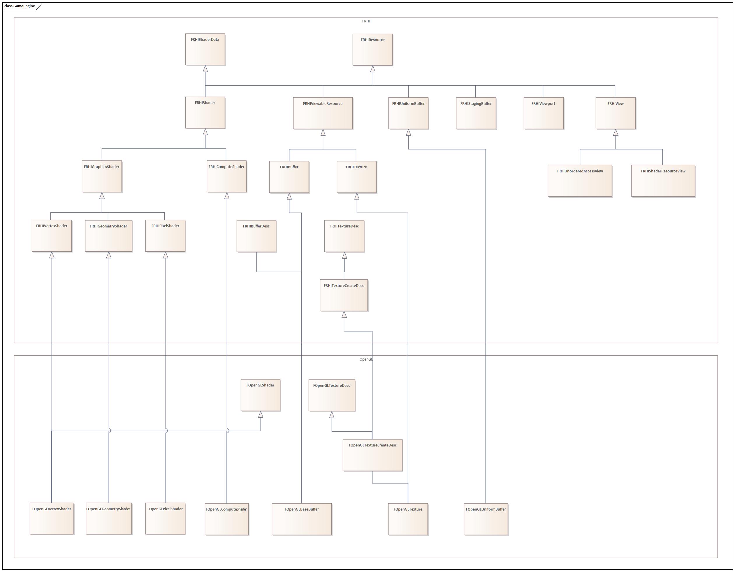 FOpenGLTexture,FOpenGLShader등. 상위 인터페이스를 상속받음- 실제